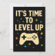 "Celebrate your next event with this fun, retro-inspired gaming invitation card! Featuring the phrase 'IT’S TIME TO LEVEL UP' in bold pixelated text, along with a classic game controller and playful pixel icons, this design is perfect for gamers. Ideal for birthday parties, gaming events, or any occasion that needs a touch of nostalgic fun."