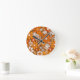 Retro Garden Floral 60s 70s Pattern Brown & Orange Round Clock