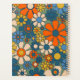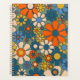 Retro Garden Flowers Groovy Cheerful Floral 60s 70s Pattern Mustard Orange Blue Green Beige Planner. Upbeat, vivid, vintage aesthetic flower design with a 1960s 1970s vibe. By Kierkegaard Design Studio.