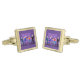 This Retro Gay Bar Cufflinks design is purple, kitschy, and utterly fabulous! Sitting on mid century modern barstools, drinking their fun, pink beverages, these dapper gentlemen are having a gay ol’ time. The hunky bartender with a pink bowtie is already pouring the next round. The silhouettes of atomic liquor bottles line the wall and the vintage 1960’s sputnik style light fixture hangs off to the side. The only thing straight about this bar is the bar!