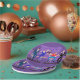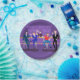 This Retro Gay Bar Paper Plate design is purple, kitschy, and utterly fabulous! Sitting on mid century modern barstools, drinking their fun, pink beverages, these dapper gentlemen are having a gay ol’ time. The hunky bartender with a pink bowtie is already pouring the next round. The silhouettes of atomic liquor bottles line the wall and the vintage 1960’s sputnik style light fixture hangs off to the side. The only thing straight about this bar is the bar!