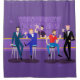 This Retro Gay Bar Shower Curtain design is purple, kitschy, and utterly fabulous! Sitting on mid century modern barstools, drinking their fun, pink beverages, these dapper gentlemen are having a gay ol’ time. The hunky bartender with a pink bowtie is already pouring the next round. The silhouettes of atomic liquor bottles line the wall and the vintage 1960’s sputnik style light fixture hangs off to the side. The only thing straight about this bar is the bar!