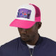This Retro Gay Bar Trucker Hat design is purple, kitschy, and utterly fabulous! Sitting on mid century modern barstools, drinking their fun, pink beverages, these dapper gentlemen are having a gay ol’ time. The hunky bartender with a pink bowtie is already pouring the next round. The silhouettes of atomic liquor bottles line the wall and the vintage 1960’s sputnik style light fixture hangs off to the side. The only thing straight about this bar is the bar!