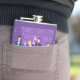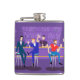 This Retro Gay Bar Vinyl Wrapped Flask design is purple, kitschy, and utterly fabulous! Sitting on mid century modern barstools, drinking their fun, pink beverages, these dapper gentlemen are having a gay ol’ time. The hunky bartender with a pink bowtie is already pouring the next round. The silhouettes of atomic liquor bottles line the wall and the vintage 1960’s sputnik style light fixture hangs off to the side. The only thing straight about this bar is the bar!