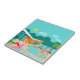 This Retro Gay Pool Party Ceramic Tile features four hunky beefcakes having a gay old time as they beat the Palm Springs heat by lounging around the turquoise blue water of their atomic boomerang shaped swimming pool. The mid century modern architecture on the fabulous, orange stone house is clearly prime real estate, given the view of the mountains in the background. A yellow starburst sun shines brightly in the turquoise sky so you are able to see every charming detail--from the kitschy, pink flamingos to the 1950’s striped, breezy blocks fence. And of course what Palm Springs House would be complete without a palm tree?
