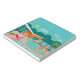 This Retro Gay Pool Party Trivet features four hunky beefcakes having a gay old time as they beat the Palm Springs heat by lounging around the turquoise blue water of their atomic boomerang shaped swimming pool. The mid century modern architecture on the fabulous, orange stone house is clearly prime real estate, given the view of the mountains in the background. A yellow starburst sun shines brightly in the turquoise sky so you are able to see every charming detail--from the kitschy, pink flamingos to the 1950’s striped, breezy blocks fence. And of course what Palm Springs House would be complete without a palm tree?