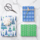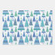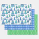 Retro Geo Scandi Christmas Trees Blue & Green Wrapping Paper Sheets