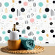 This Memphis-inspired geometric abstract design brings a modern twist to mid-century style with it's playful shapes and soft palette of teal, pink, and black on a crisp white background. The dynamic composition captures the essence of bold yet approachable mid-century modern patterns. Perfect for a modern home office or even a striking bathroom feature wall, this versatile wallpaper design will be a cheerful addition to any room of the house. Try out Zazzle's handy transfer option or search ID1069 to see additional patterns and products in this design set. Note: pattern adapted from generative content.