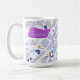 This Memphis-inspired geometric abstract design brings a modern twist to mid-century style with it's playful shapes and colorful palette of violet purple, baby blue, and golden yellow on a crisp white background. The dynamic composition captures the essence of bold yet approachable mid-century modern patterns. This unique coffee mug design can be easily personalized to suit your unique style using the supplied template. Try out Zazzle's handy transfer option or search ID1067 to see additional patterns and products in this design set. Note: pattern adapted from generative content.