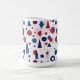 This Memphis-inspired geometric abstract design brings a modern twist to mid-century style with it's playful shapes and bold palette of red, white and blue on a crisp white background. The dynamic composition captures the essence of mid-century modern patterns. This versatile coffee mug design can be easily personalized to suit your unique style using the supplied template. Try out Zazzle's handy transfer option or search ID1067 to see additional patterns and products in this design set. Note: pattern adapted from generative content.