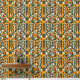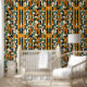 A vibrant retro-inspired geometric design featuring bold orange, green, and black shapes. The abstract arrangement of rounded lines and circles creates a dynamic, vintage aesthetic.