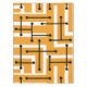 A simple mid century modern pattern with geometric shapes resembling a maze, with lines of various sizes. Bright yellow-green with black lines.