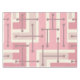 A simple mid century modern pattern with geometric shapes resembling a maze, with lines of various sizes. Vintage, desaturated, pale shades of pink and vanilla cream off-white.