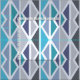 A mid century modern inspired abstract art design with atomic age style geometric vertical triangles in different sizes. In dark gray, light gray, turquoise, teal, and various shades of blue.