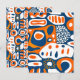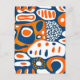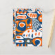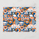 Retro geometric blue orange white postcard
