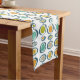 Add a pop of color to your retro dining room decor with this adorable mid-century cloth table runner. This design features the bright and bold colors of turquoise, blue, orange, gold and tan.