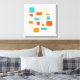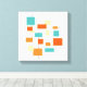 This mid century modern canvas artwork features various squares, rectangles and lines in a combination of colors popular in the mid 20th century as well as today - teal blue, two shades of orange, cream and black. This will make a colorful addition to your home decor!