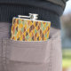 Well made flask, a little better than I had expected. Flask came in clear plastic box which gave it a nice presentation when I took it out of the zazzle packaging. Image is not printed on flask but on sticker. Don't know how this will hold up I haven't used it yet. This would make a Great gift! I plan to purchase more for friends! Cheers. I thought a little brighter than computer. Very crisp, writing wasn't