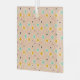 Retro geometric pattern with teal, orange, and black star-shaped diamonds on a peach background. The design conveys a playful, vintage feel.