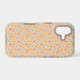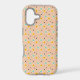 Retro geometric pattern with teal, orange, and black star-shaped diamonds on a peach background. The design conveys a playful, vintage feel.