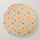 Retro geometric pattern with teal, orange, black round pillow