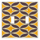 A retro geometric pattern with overlapping yellow and brown leaf shapes creating an interconnected diamond design. Vibrant, symmetrical, and bold.