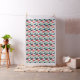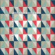 Very trendy geometric pattern with blue, red and beige triangles.