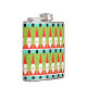 Any way you look at it this Retro Geometric Santa Flask is pure holiday whimsy! It’s rows of Santas. No, it’s rows of Christmas trees. No, it’s rows of Santas shaped like Christmas trees and rows of cheery green Christmas trees with white polka dots. It’s kitschy. It’s colorful. And it if doesn’t put you in the holiday spirit, something is definitely wrong with you! Each identical triangular Santa Claus is wearing his trademark red and white suit and hat. Each hat has a yellow starburst on top, which serves as a tassel for Santa’s headwear and a vintage star for a Christmas tree. Old Saint Nick has a well-groomed white beard, jolly red nose and cheerful curved eyes. Each Santa’s black boots also serve as a trunk to a Christmas tree. Where Santa’s feet and tree trunks meet, there is a stripe of mid century inspired aqua. A purchase of this product is guaranteed to keep you off the naughty list no matter what you’ve done!