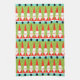 Any way you look at it this Retro Geometric Santa Kitchen Towel is pure holiday whimsy! It’s rows of Santas. No, it’s rows of Christmas trees. No, it’s rows of Santas shaped like Christmas trees and rows of cheery green Christmas trees with white polka dots. It’s kitschy. It’s colorful. And it if doesn’t put you in the holiday spirit, something is definitely wrong with you! Each identical triangular Santa Claus is wearing his trademark red and white suit and hat. Each hat has a yellow starburst on top, which serves as a tassel for Santa’s headwear and a vintage star for a Christmas tree. Old Saint Nick has a well-groomed white beard, jolly red nose and cheerful curved eyes. Each Santa’s black boots also serve as a trunk to a Christmas tree. Where Santa’s feet and tree trunks meet, there is a stripe of mid century inspired aqua. A purchase of this product is guaranteed to keep you off the naughty list no matter what you’ve done!