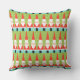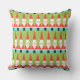 Any way you look at it this Retro Geometric Santa Throw Pillow is pure holiday whimsy! It’s rows of Santas. No, it’s rows of Christmas trees. No, it’s rows of Santas shaped like Christmas trees and rows of cheery green Christmas trees with white polka dots. It’s kitschy. It’s colorful. And it if doesn’t put you in the holiday spirit, something is definitely wrong with you! Each identical triangular Santa Claus is wearing his trademark red and white suit and hat. Each hat has a yellow starburst on top, which serves as a tassel for Santa’s headwear and a vintage star for a Christmas tree. Old Saint Nick has a well-groomed white beard, jolly red nose and cheerful curved eyes. Each Santa’s black boots also serve as a trunk to a Christmas tree. Where Santa’s feet and tree trunks meet, there is a stripe of mid century inspired aqua. A purchase of this product is guaranteed to keep you off the naughty list no matter what you’ve done!