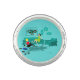 It looks like it’s going to be a fun time with this kitschy Retro Girls’ Night In Ring. The 1960’s style, minimalist art design features two women with pink cocktails in a thoroughly mid century modern, aqua and turquoise living room. These ladies certainly know how to relax. The raven haired beauty in the flirty, green dress is lounging on the atomic sofa. Her blonde companion is sitting on a zebra print rug, wearing a red top and tight, black pants. The vintage, vinyl record player and paper lantern light fixtures set the mood. A framed, space age, globe art print hangs above the mod sofa.