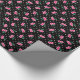 Retro girly black pink cherry patterns monogram wrapping paper