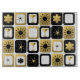 What's black and white and gold all over? It's this Retro Glamorous Gold Cutting Board. The mid century modern design features a grid of sophisticated images. There are mix and match patterns of mod flowers, starbursts, martini glasses, and impressionist stars on black, white, and gold backgrounds. This design is ideal, making every day a celebration. Order today because all that glitters really should be gold!