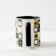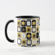 What's black and white and gold all over? It's this Retro Glamorous Gold Mug. The mid century modern design features a grid of sophisticated images. There are mix and match patterns of mod flowers, starbursts, martini glasses, and impressionist stars on black, white, and gold backgrounds. This design is ideal, making every day a celebration. Order today because all that glitters really should be gold!