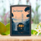 The image shows a stylized travel-poster illustration of San Francisco at sunrise (or sunset). Across the top, in hand-lettered script, reads “San Francisco.” Below it, the Golden Gate Bridge spans the misty bay in soft peach and slate-blue tones. In the foreground, a single historic cable car (number 24) rolls down a steep, tree-lined hill—its interior windows glowing warm amber against the cool shadows of the street. Silhouetted Victorian-style houses peek out from behind the darkened trees on either side. The overall palette is restrained—peach sky, muted blues and grays—with the cable car’s interior light drawing your eye to the center. The design captures that iconic, nostalgic Golden Gate City moment in a clean, minimalist style on the lighter’s front face.