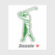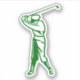 Golf sports theme cutout shape sticker with a retro golfer swinging a golf club action. Designed for the golf industry to decorate invoices, customer correspondence, or as a golf themed party favor.