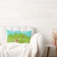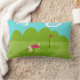 This Retro Golfer Lumbar Pillow is more fun than a day on the greens. The 1960's style, minimalist art design is anything but par for the course. It features a lone golfer on a lush, green fairway. The mid century modern golfer is making a real fashion statement in his stylish, plaid, golf pants and fuchsia shirt. The blond, fit, weekend warrior is on his hands and knees attempting to line up a shot. Or maybe he's attempting to give the ball a nudge in the direction of the hole. Does it really matter? At his side, we see a single, golf club. In front of him, is the elusive hole, with a red flag, which is taunting him. The background features a green line of cartoon trees, an aqua sky and two, white, kidney bean shaped clouds. The opposite side of this fun throw pillow is green and can be personalized. This design is sure to be a hole in one with your favorite golf pro.