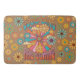 Good Days Are Coming Seventies Bath Mat. Fun retro design with that groovy feel. Teal and gold flower power resting on a retro spin wheel. A fabulous tribute to the seventies. It's on my list!