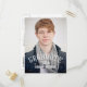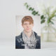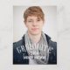 Modern Graduation Party Invitation Postcard for male graduates with a simple design with retro typography white text overlay. Elke Clarke © for MonogramGallery. Customize with your grad information by selecting "customize it" or use the template menu prompts. Exchange the sample photo for your own.