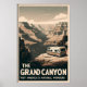 • Explore the awe-inspiring beauty of the Grand Canyon with this retro-style poster featuring a scenic view of the canyon and a vintage camper van. This artwork captures the sense of adventure and wanderlust, perfect for road trip enthusiasts and nature lovers alike. With its nostalgic design, this poster brings the grandeur of one of America's most iconic natural wonders into your home, making it an ideal addition to any travel or landscape art collection.