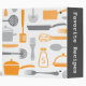 Retro styled kitchen recipes binder featuring a pattern of kitchen items like pots, pans, whisks and cutlery in two shades of gray and orange. Dark charcoal gray spine with customizable text "Favorite recipes". Customizable text on front "Recipes". Available in different colors. NOTE: this is a binder only, does NOT include inserts. For custom requests or help with customizing please use the store contact link above.