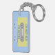 Funny age joke "I'm not old, I'm retro" on pastel green and blue cassette tape on keychain.