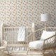 This classic and simple & sweet pink boho strawberry baby girl nursery wallpaper is perfect for a baby nursery, kids room or playroom. The unique berry fruit design features cute strawberries in pink with green leaves and creamy blossoms with pops of yellow on a soft background.