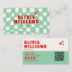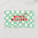 Retro Green Bold Groovy Checkered Funky QR Code Business Card