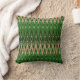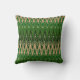 Decorative throw pillow features a retro wave pattern in shades of green with tan and brown accents. A mid-century modern pattern in a retro inspired color palette, this decorative pillow will add a splash of color to any retro decor or add a touch of style and vintage flare to any modern room.