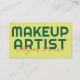 Bold, feminine, and unmistakably retro — this horizontal green, citrus lime yellow and orange business card design is perfect for modern makeup artists and hair stylists who want their brand to pop. The minimalist red bow detail and oversized “MAKEUP ARTIST” text give it a playful yet professional vibe. The back includes a scannable QR code for appointments and social links. Easy to update with your own info and logo — ideal for beauty professionals looking for a standout design.