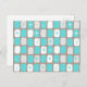 This Retro Turquoise and White Starbursts Postcard is so adorably space age you won’t be able to contain your enthusiasm. And, why would you want to? This 1960’s mid century modern inspired design features a dark heather grey background and rows of perfectly imperfect rectangles in turquoise, white, and dove grey. Kitschy white and turquoise starbursts are placed in randomly selected rectangles. This mod pattern will make you feel like you jumped in a time machine and set the dial for irresistibly vintage!