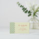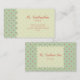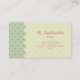 An all purpose generic business card featuring a retro green background with small melon color polka dots. Sheer section at right features a zig zag edge. Melon text. Opposite side features matching background. Personalize with your name and title inside sheer zig zag rectangle. Look for matching items at Jill's Paperie.