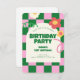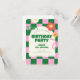 Retro Green Pink Checker Pattern Birthday Party Invitation