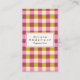 Retro Green Pink Checkered Gingham Girly QR Code Business Card